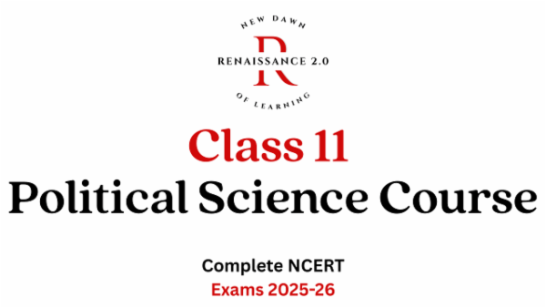 Class 11 Political Science introduces students to ideas like liberty, equality, rights, justice, constitution, citizenship, parliament, judiciary, federalism and political philosophy. With the Renaissance 2.0 approach, these topics become easy to understand, relatable, and conceptually strong, even for students who are completely new to Political Science.